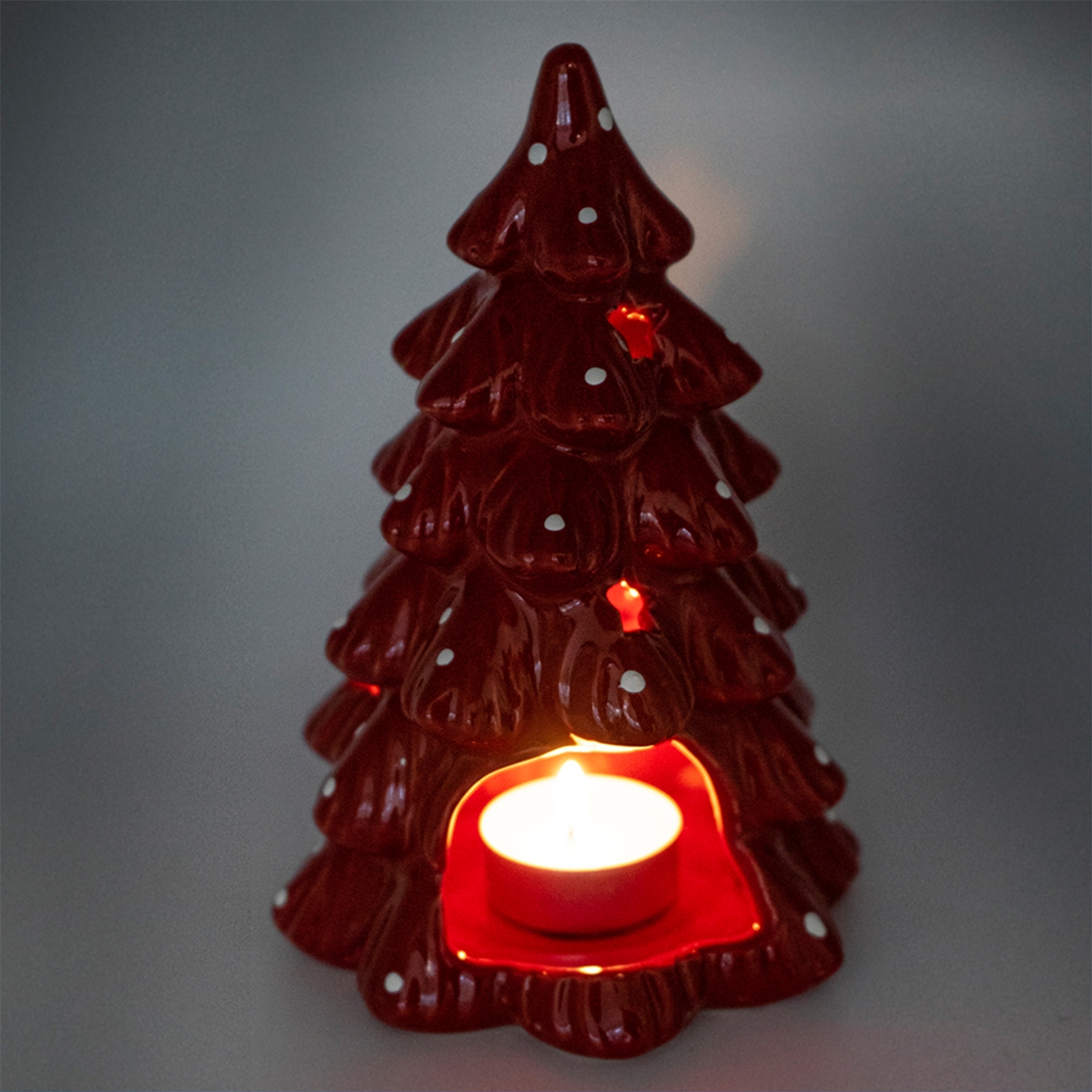 Niedliche Herbst/Winterdekoration aus Porzellan, Teelichthalter Weihnachtsbaum. Maße:12x12x18cm (L/B/H). Ideal zum Dekorieren und verschönern der Wohnung oder des Gartens.