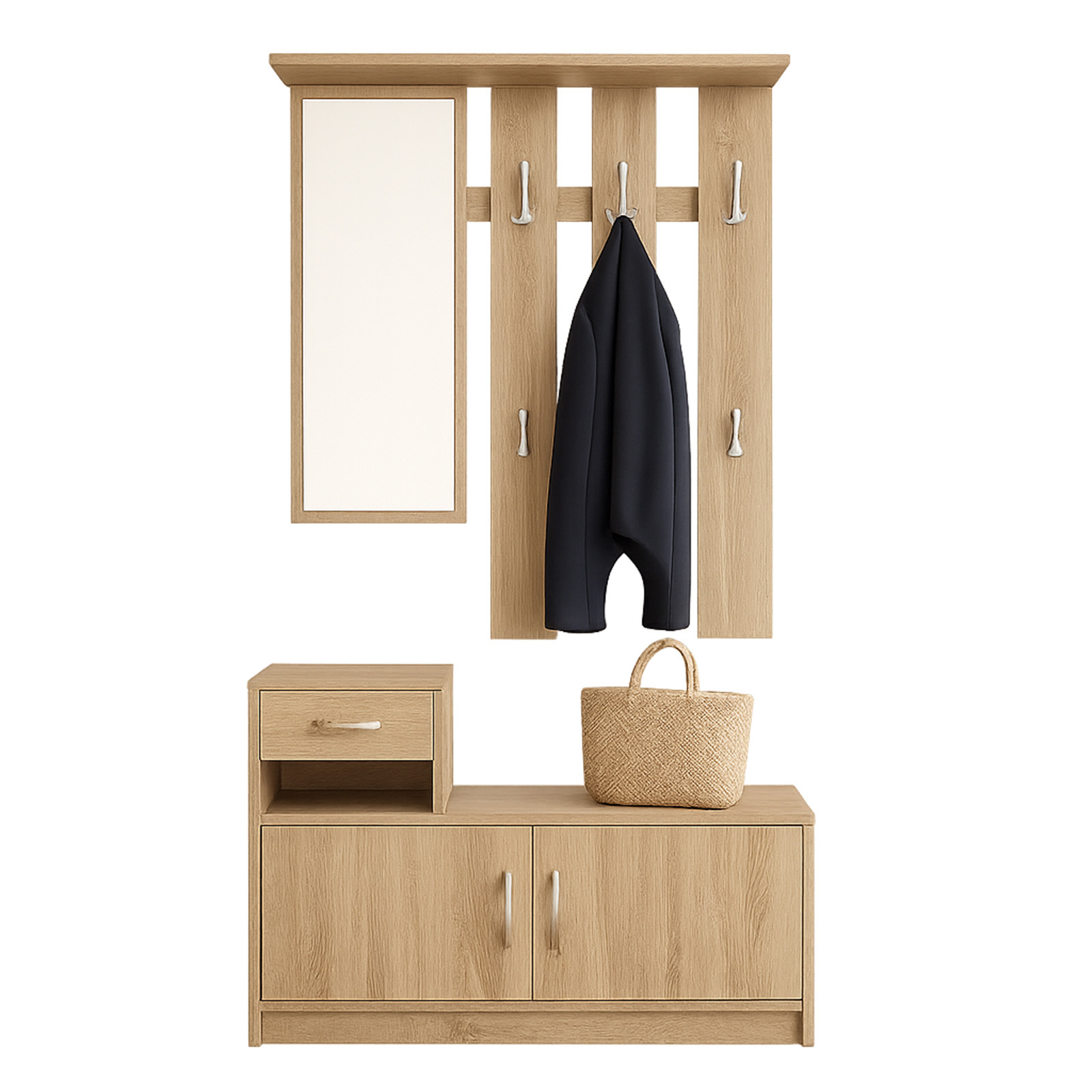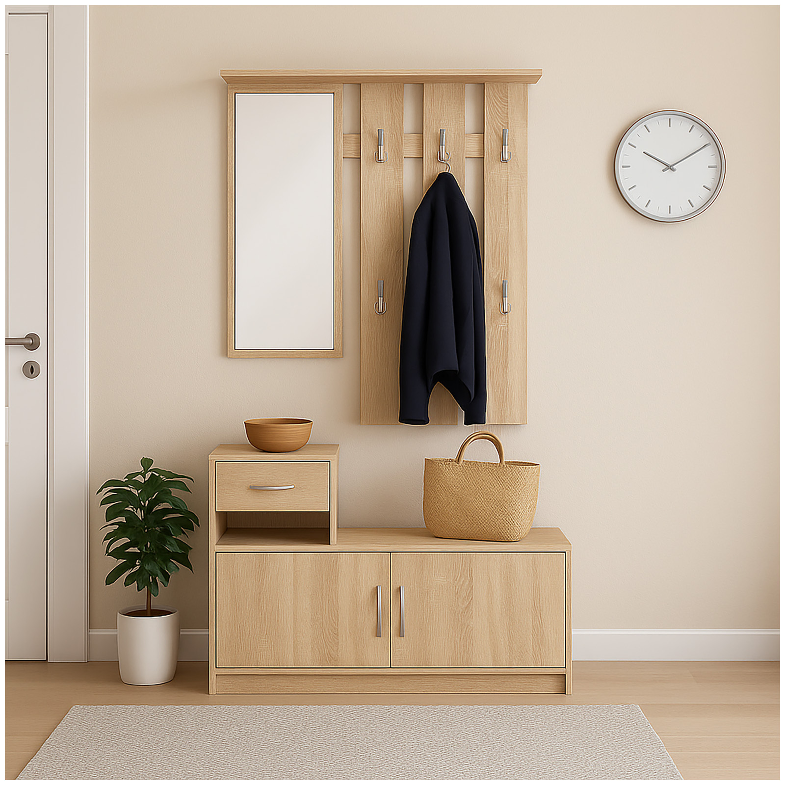 Lieferumfang: 1 Garderobenpaneel mit Spiegel, 1 Schuhschrank