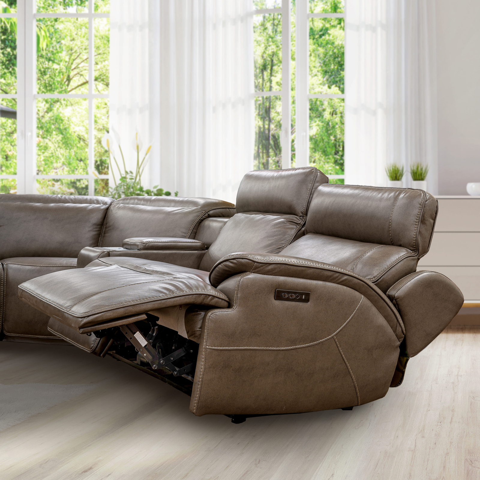 Das Ecksofa Pavel ist das ideale Sofa für gemütliche Fernsehabende und bietet Platz für die ganze Familie. Mit pflegeleichtem Bezug aus Kunstleder sorgt es mit per Knopfdruck verstellbaren Kopf- und Fußstützen für optimalen Sitzkomfort. Die integrierte Konsole aus Edelstahl mit Stauraum inklusive 2 Becherhaltern, USB-Steckplatz und Induktionsladefeld macht das Heimkinoerlebnis perfekt.