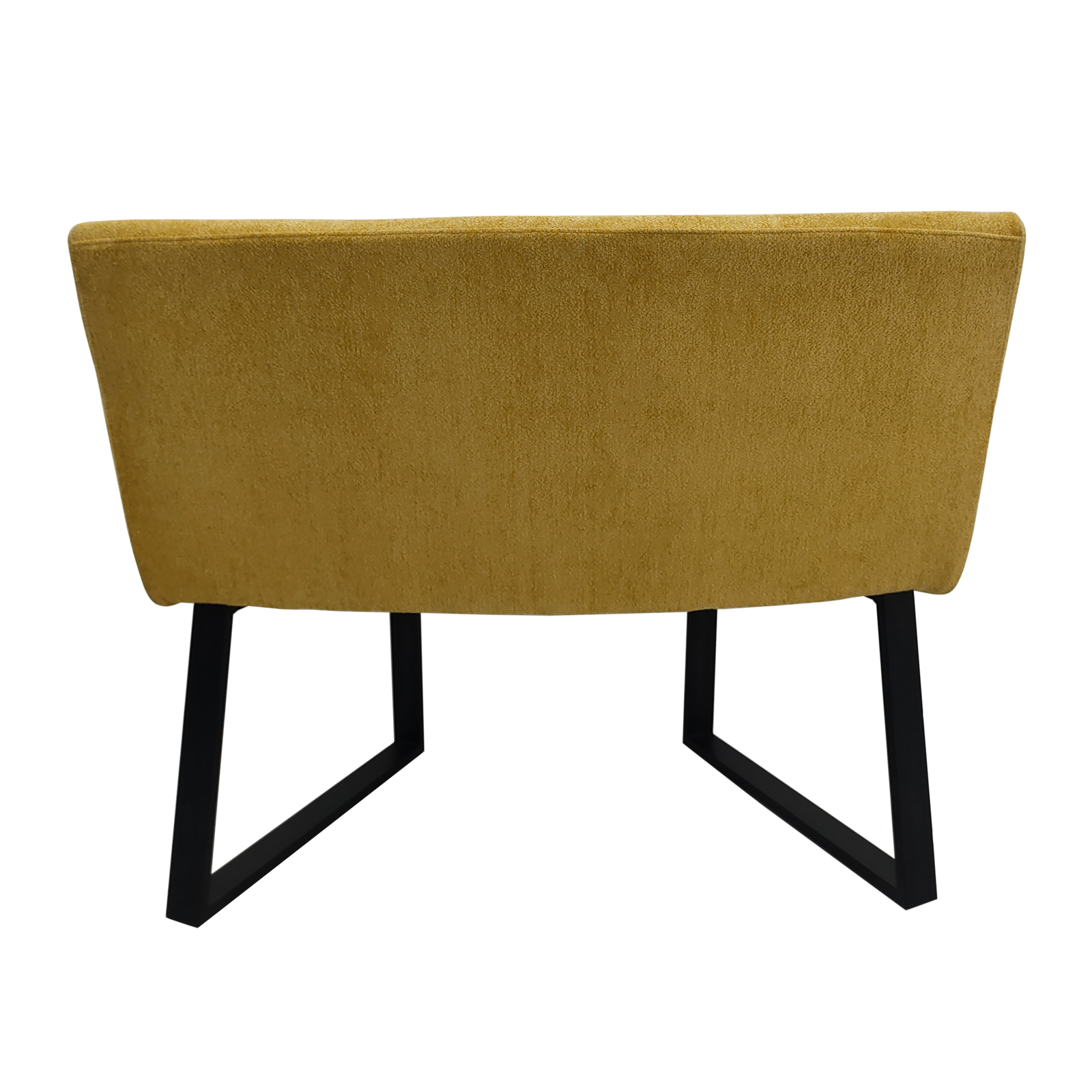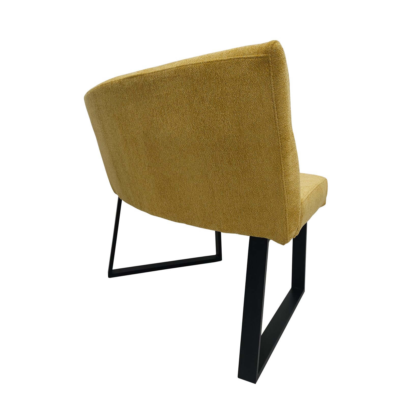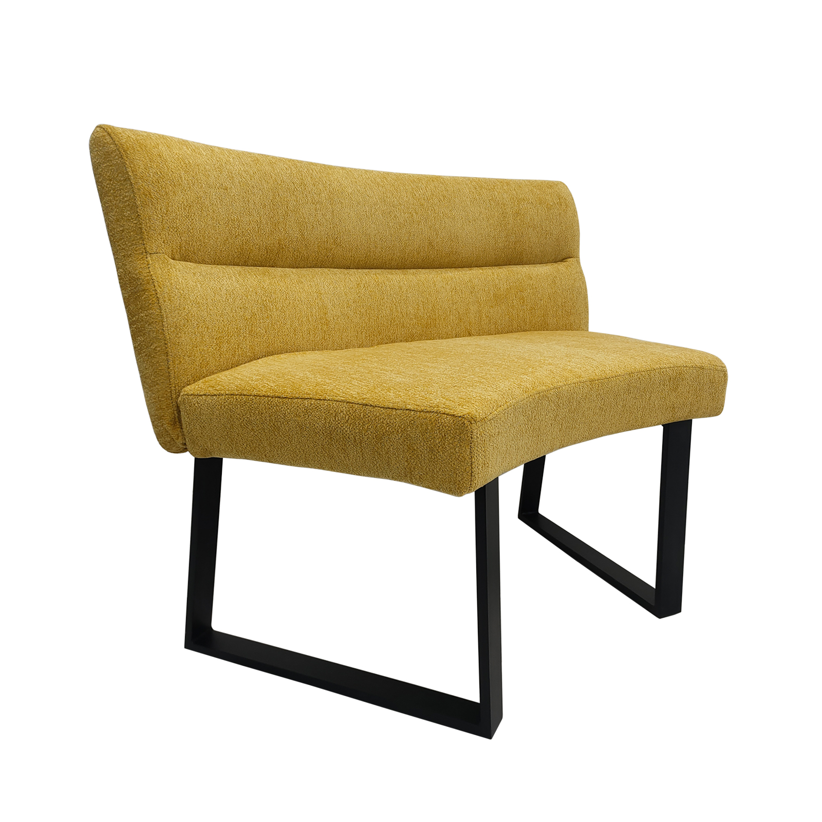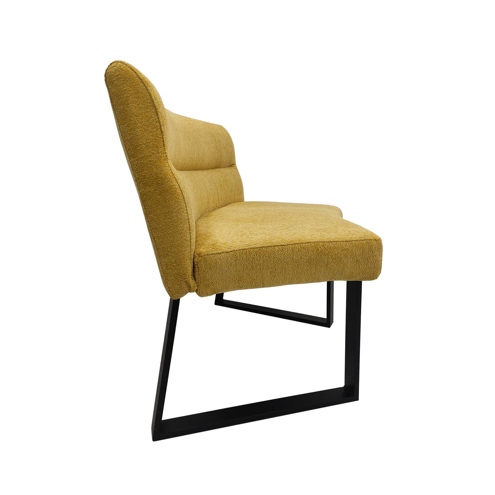 Die Sitzbank Liron in gewölbtem Design fügt sich harmonisch in Ihren Wohnbereich mit rundem Esstisch ein. Sie besticht durch ihre Oberfläche in Chenille-Optik. Bequem gepolstert und mit Rückenlehne sorgt die Bank für optimalen Sitzkomfort. Das formschöne Kufengestell aus Metall rundet das Design perfekt ab. Die Sitzbank lässt sich perfekt mit dem Stuhl dieser Serie zur Sitzgruppe kombinieren. Maße B/H/T 108 x 82 x 60 cm, Sitzhöhe 50 cm, Sitztiefe 44 cm, belastbar bis 360 kg
