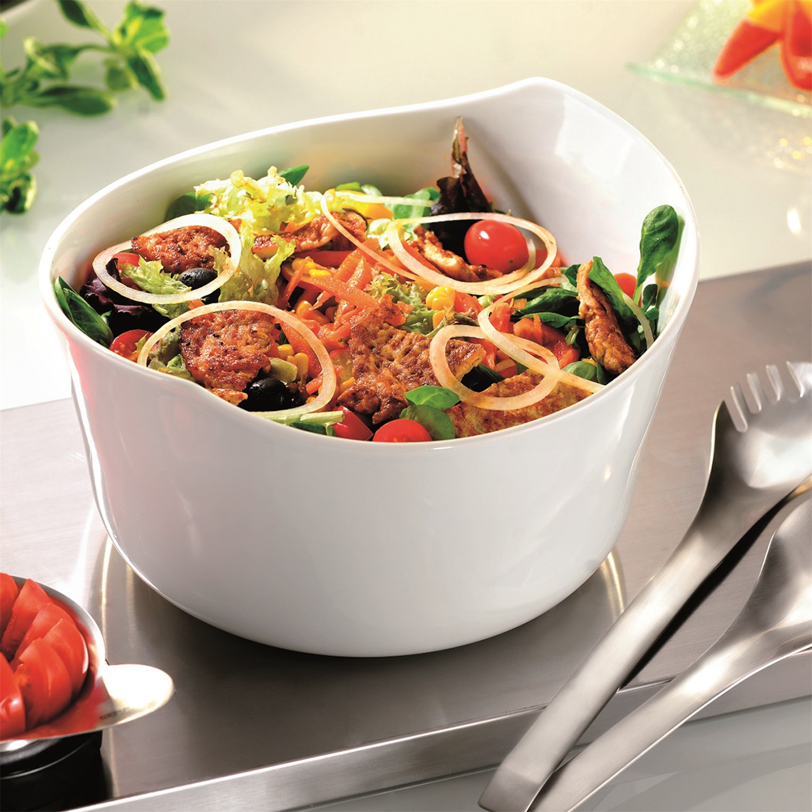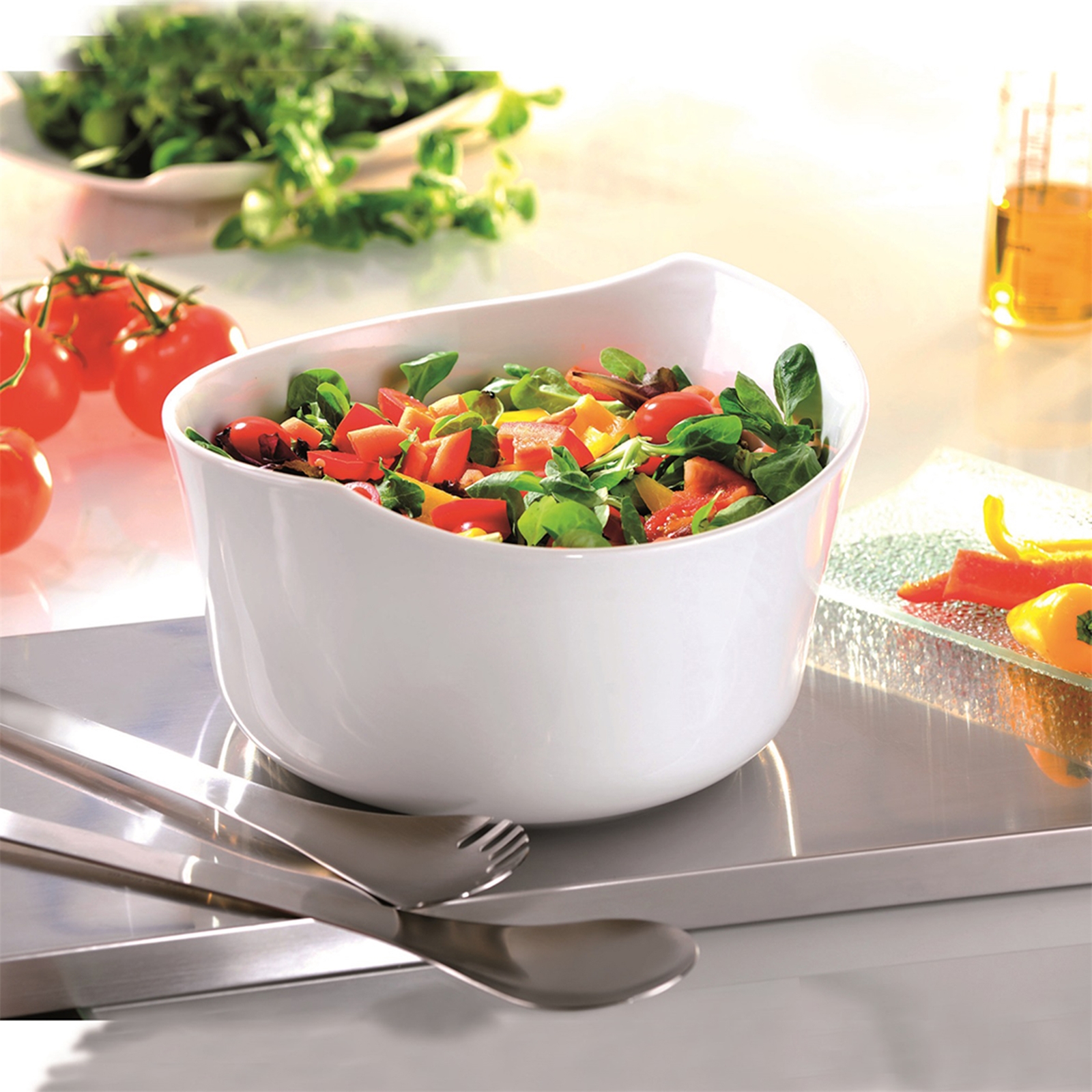 Mit dem Salat- und Pastabesteck aus Edelstahl wird das Anrichten und Servieren von Salaten und Lebensmitteln jeglicher Art zum absoluten Hingucker. Denn mit seinem zeitlosen, formvollendeten Design und einer Länge von 32 cm passt das formschöne Duo nicht nur zu jedem Porzellanservice, sondern packt auch tatkräftig beim Schöpfen und Greifen mit an – ob in der Küche oder bei Tisch.