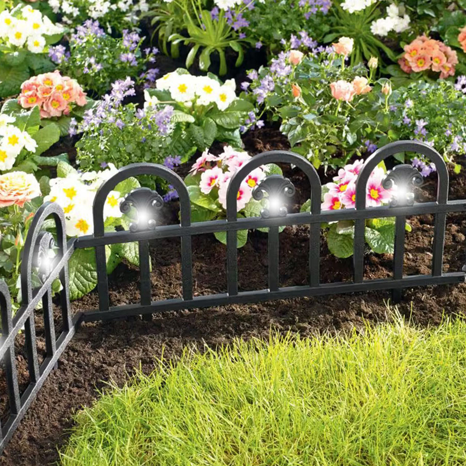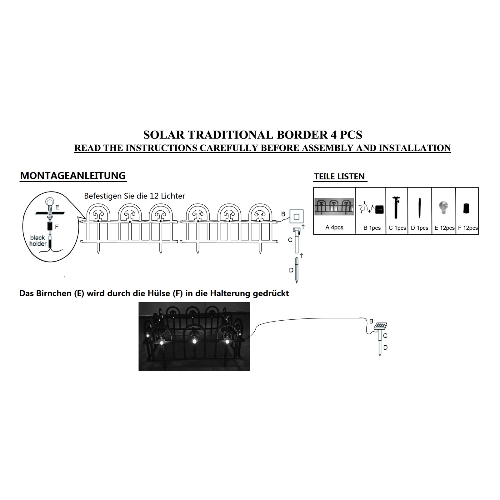 Set bestehend aus 16 Zaunelementen, inklusive 4 Solar-Lichterkette mit 12 Lichtern (3 Lichter je Zaunelement, Montage siehe Anleitung)