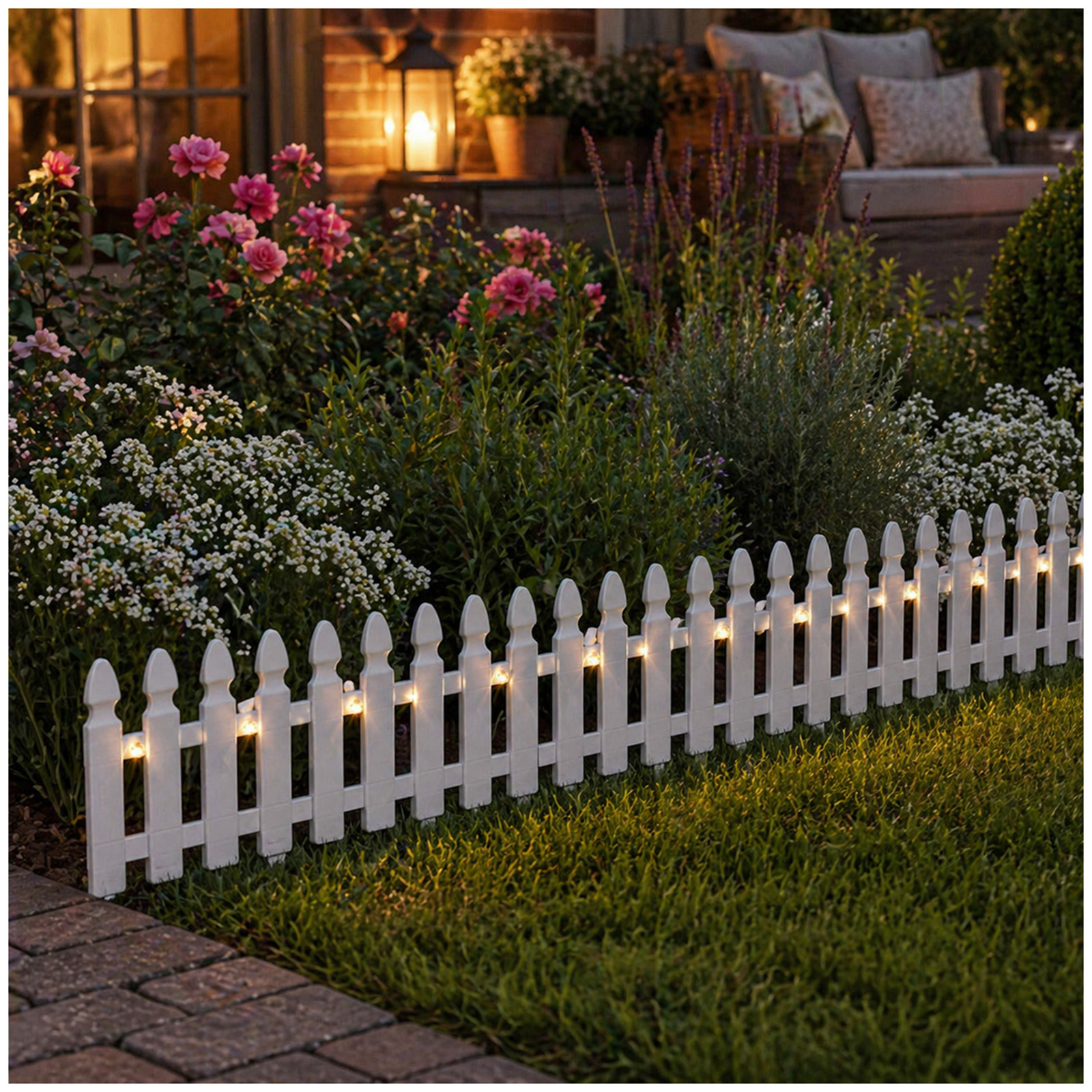 Lieferumfang: 12 Zaunelementen, inklusive 12 Solarleuchten