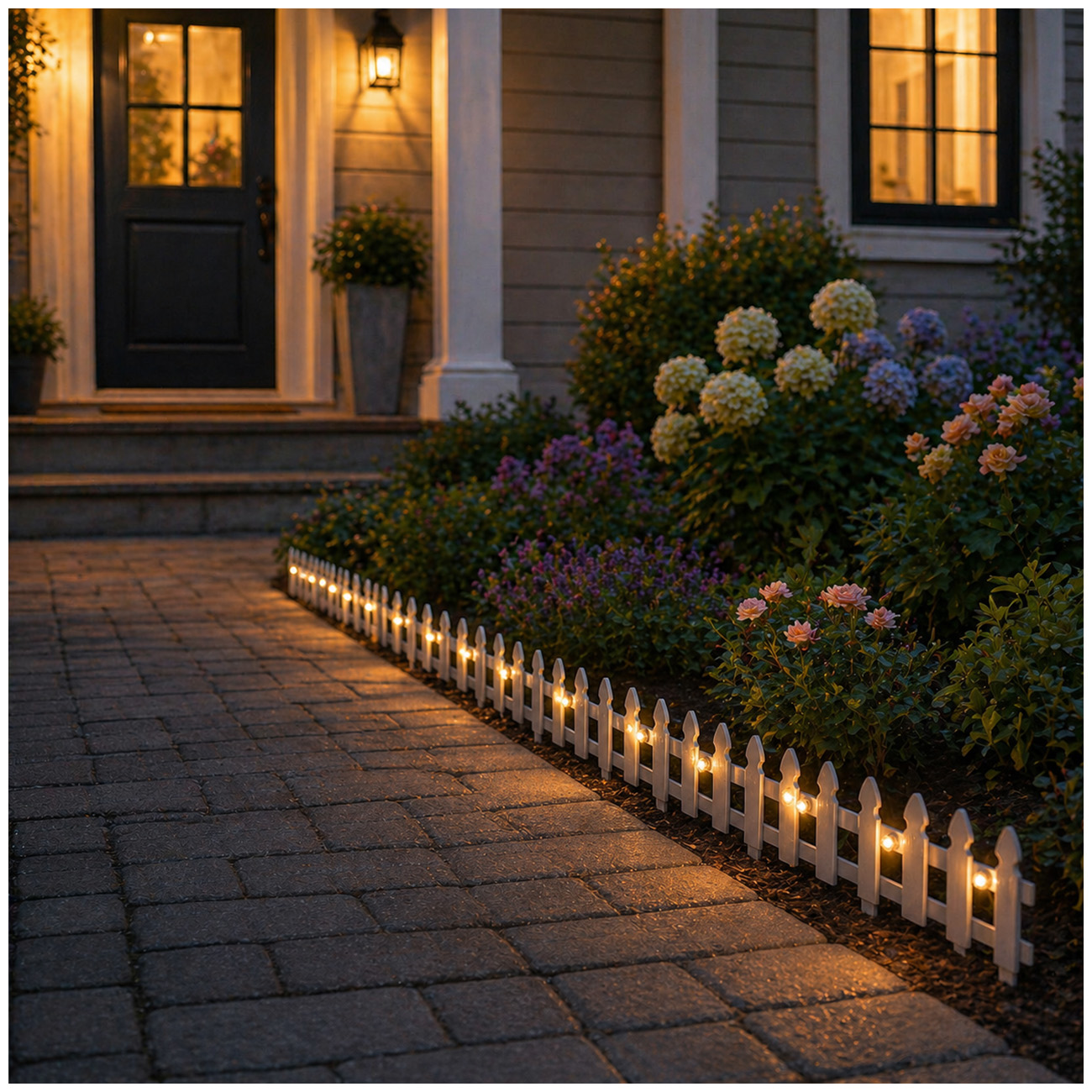 Lieferumfang: 16 Zaunelementen, inklusive 16 Solarleuchten