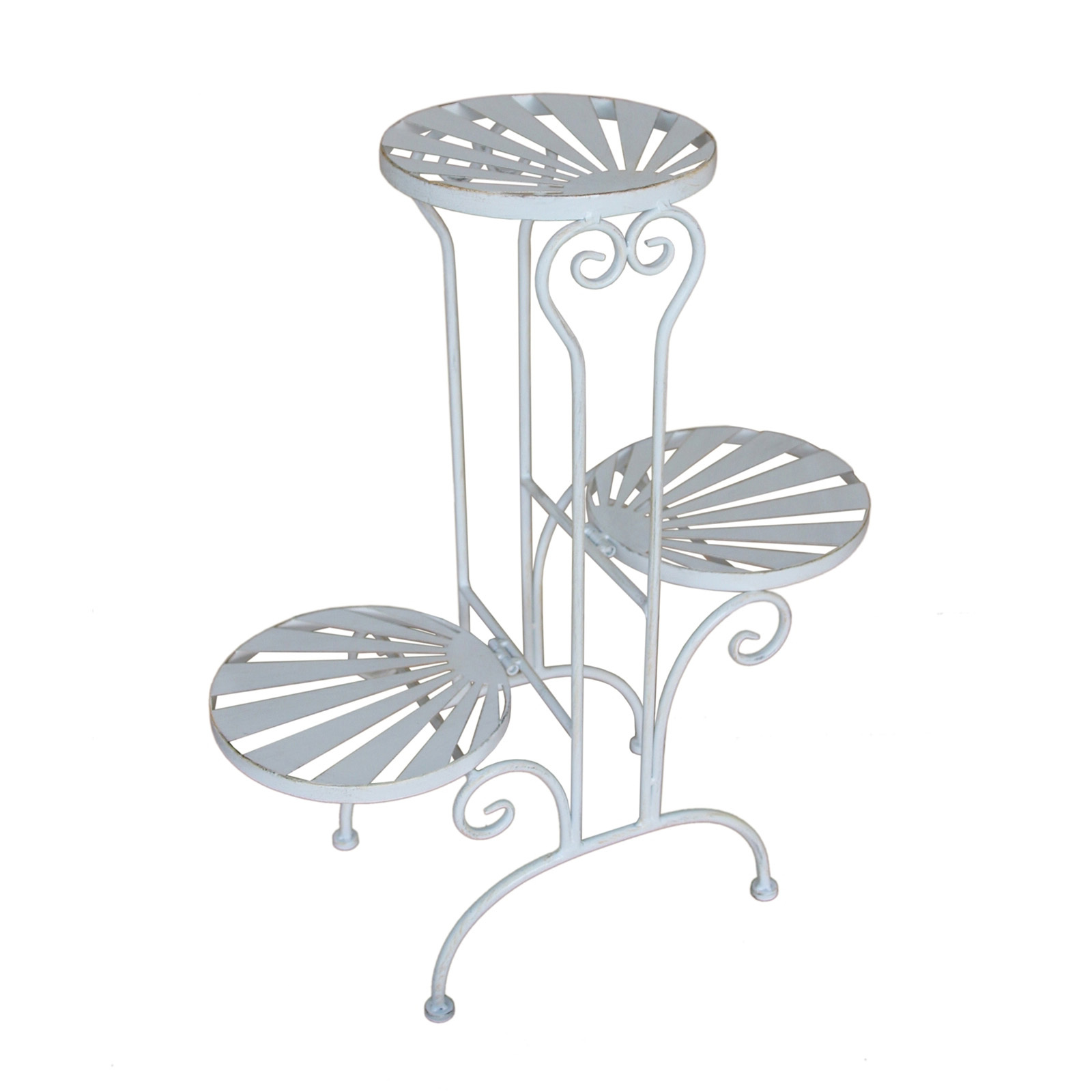 Geben Sie Ihren Topfpflanzen einen stilvollen Platz mit dem eleganten Pflanzenständer Celia von HTI-Living. Dieser Blumenhocker gefertigt aus robustem Metall in zeitlosem Weiß fügt sich harmonisch in verschiedene Wohnbereiche wie Balkon, Terrasse, Wintergarten oder Wohnzimmer ein. Maße: B/H/T 55 x 63 x 22 cm, Material: Metall Dieser Blumenhocker ist im angesagten Shabby-Design gefertigt. Farbabplatzung sind gewollt und kein Reklamationsgrund.