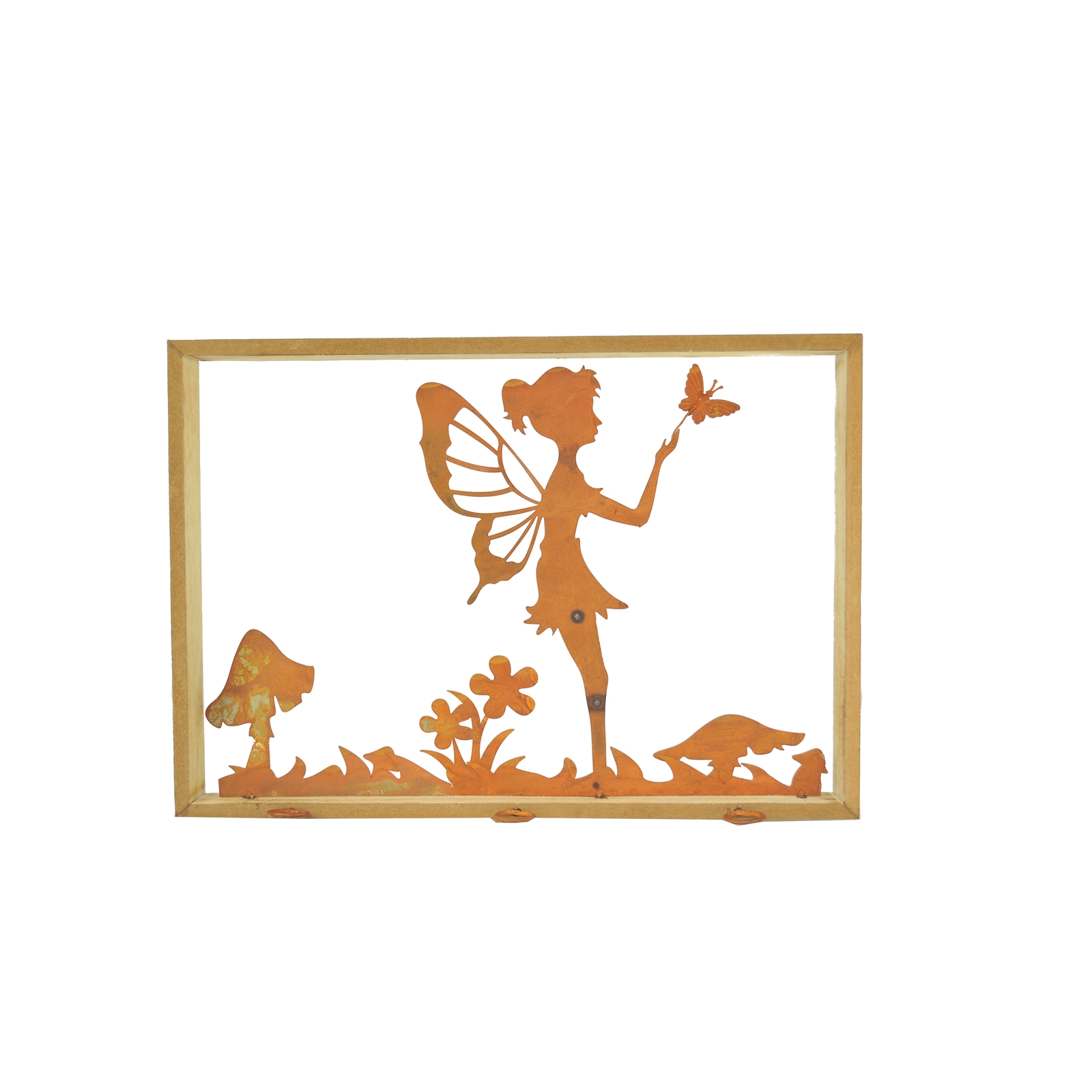 HTI-Living rustikales Fensterbild im Rahmen Wanddeko Metall "Fee mit Schmetterling"
