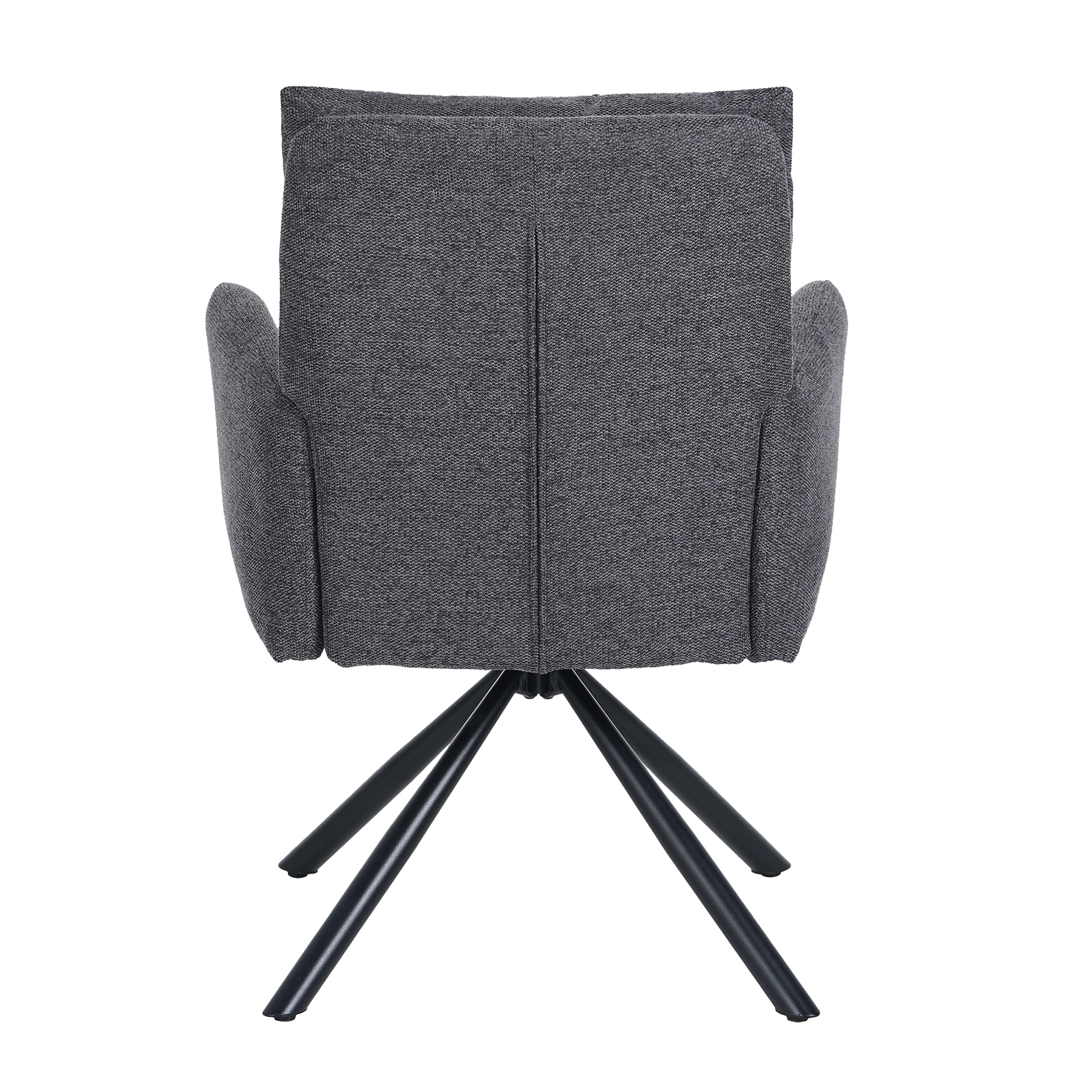 Mit dem Esszimmerstuhl Kyra schaffen Sie einen modernen, komfortablen und funktionalen Mittelpunkt für Ihr Esszimmer – perfekt für gesellige Abende und stilvolles Wohnen. Mit seiner 180° Auto-Return Drehfunktion bietet er nicht nur Bewegungsfreiheit, sondern sorgt auch dafür, dass der Stuhl stets in seine Ausgangsposition zurückkehrt. Der strapazierfähige Polyesterbezug und die schwarzen pulverbeschichteten Metallbeine machen den Stuhl robust, pflegeleicht und langlebig. Dank seiner ergonomischen Form mit Armlehnen und hoher Rückenlehne lädt der Stuhl Kyra zu langen, gemütlichen Stunden am Esstisch ein. Lieferumfang: 2 Stühle Artikelmaße: B/H/T 60 x 90,5 x 66 cm, belastbar bis 140 kg Sitzhöhe: 48 cm, Sitzbreite: 46 cm Höhe Armlehne ab Fußboden: 63,5 cm
