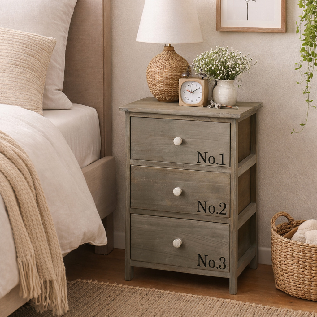 Mit ihren kompakten Maßen von 40 x 58 x 29 cm (B/H/T) präsentiert sich die Kommode als praktisches Möbelstück für verschiedenste Wohnbereiche. Sie bietet mit 3 Schubladen ausreichend Stauraum für persönliche Lieblingsstücke, Accessoires oder Alltagsgegenstände und überzeugt dabei mit einer platzsparenden, dennoch funktionalen Größe.