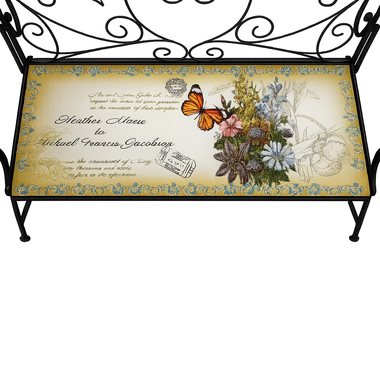 Produktinformationen "Gartenbank Celia "Schmetterling" schwarz Motivdruck Metall"