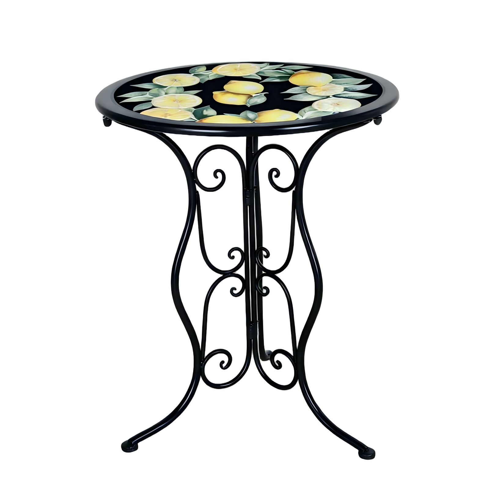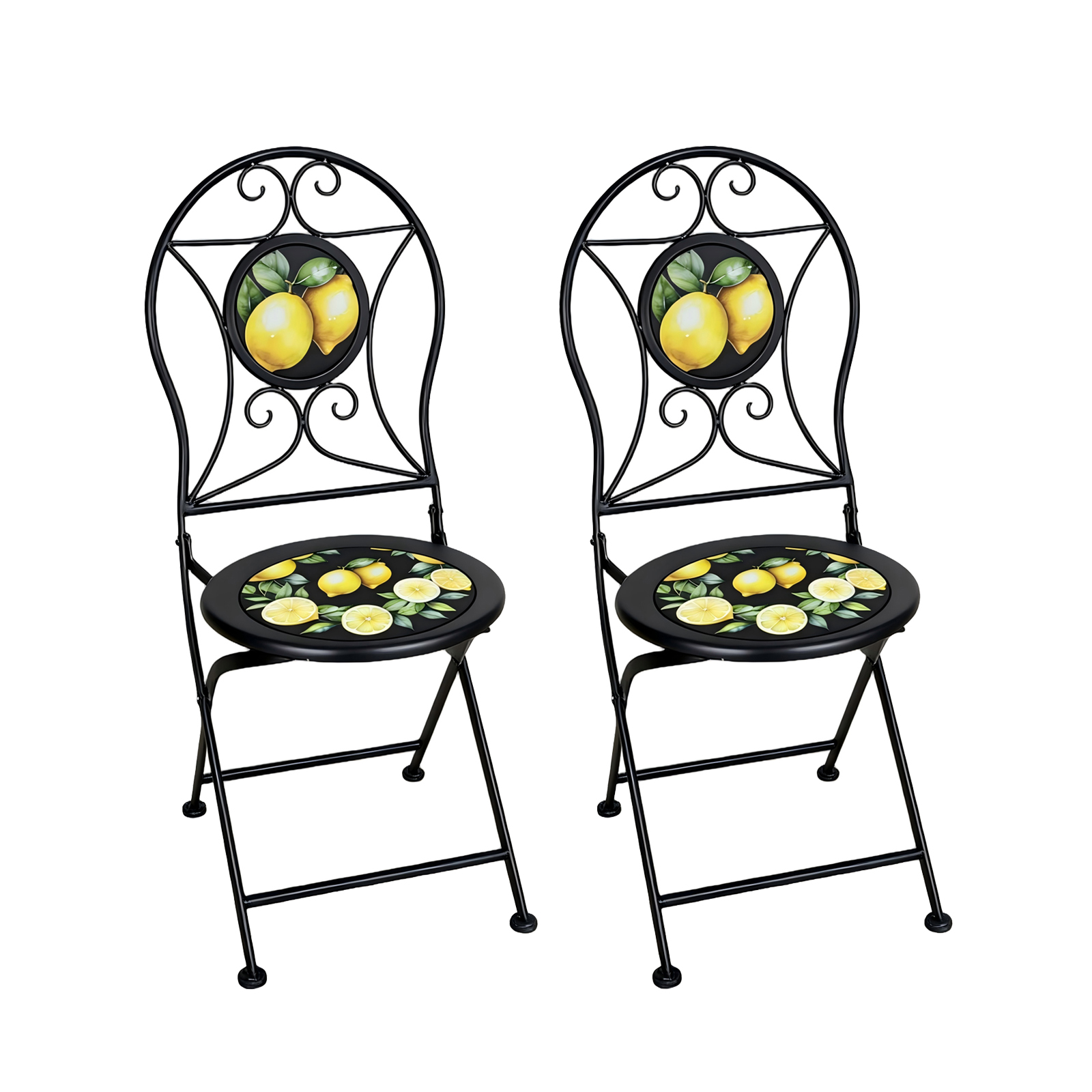 Bringen Sie mediterranes Flair auf Balkon, Terrasse oder in den Garten! Das 3-teilige Set aus robustem Eisen begeistert mit seinem eleganten Gestell in Schwarz. Das dekorative Zitronenmotiv setzt sommerliche Akzente, verleiht dem Design eine leichte, frische Note und sorgt für eine einladende Atmosphäre.