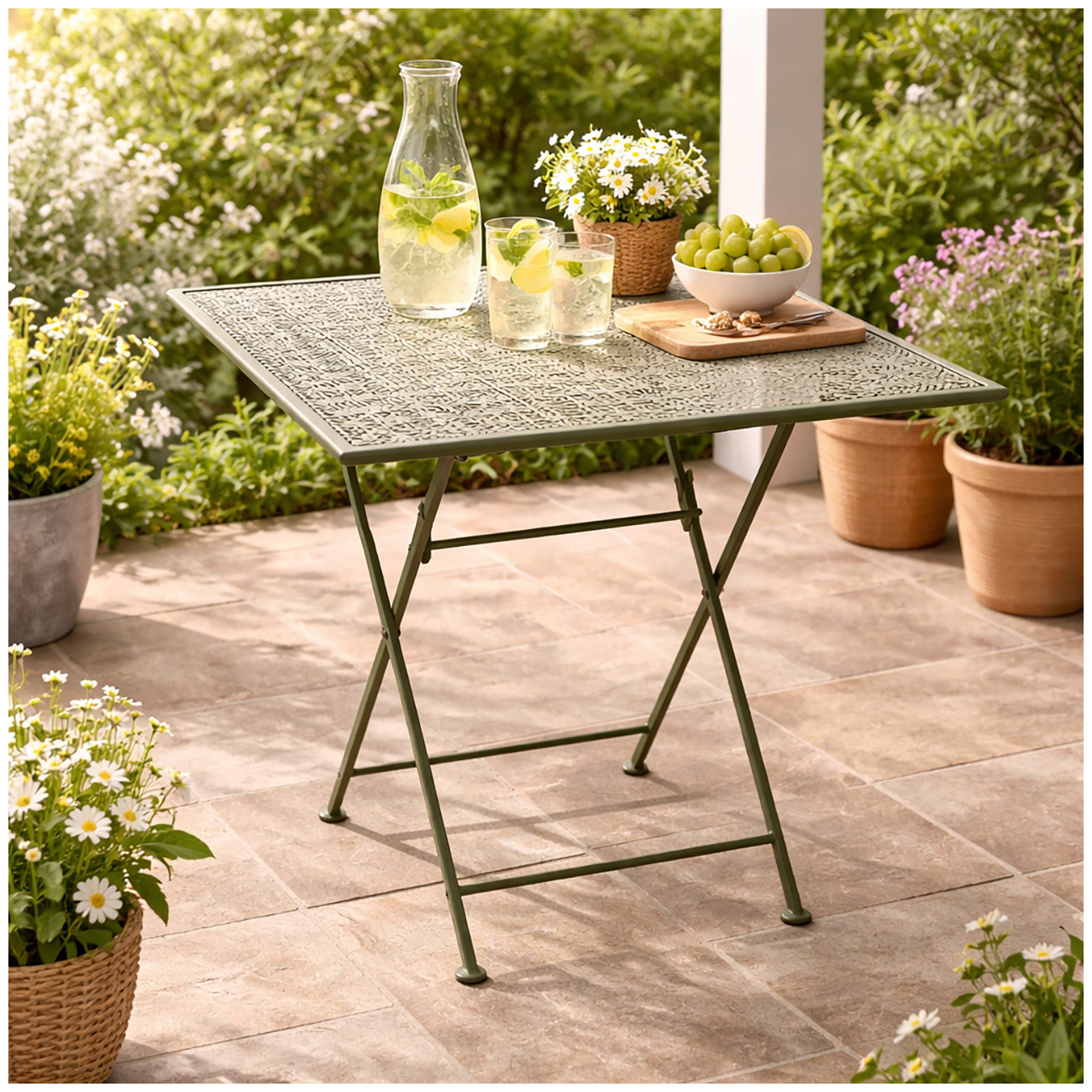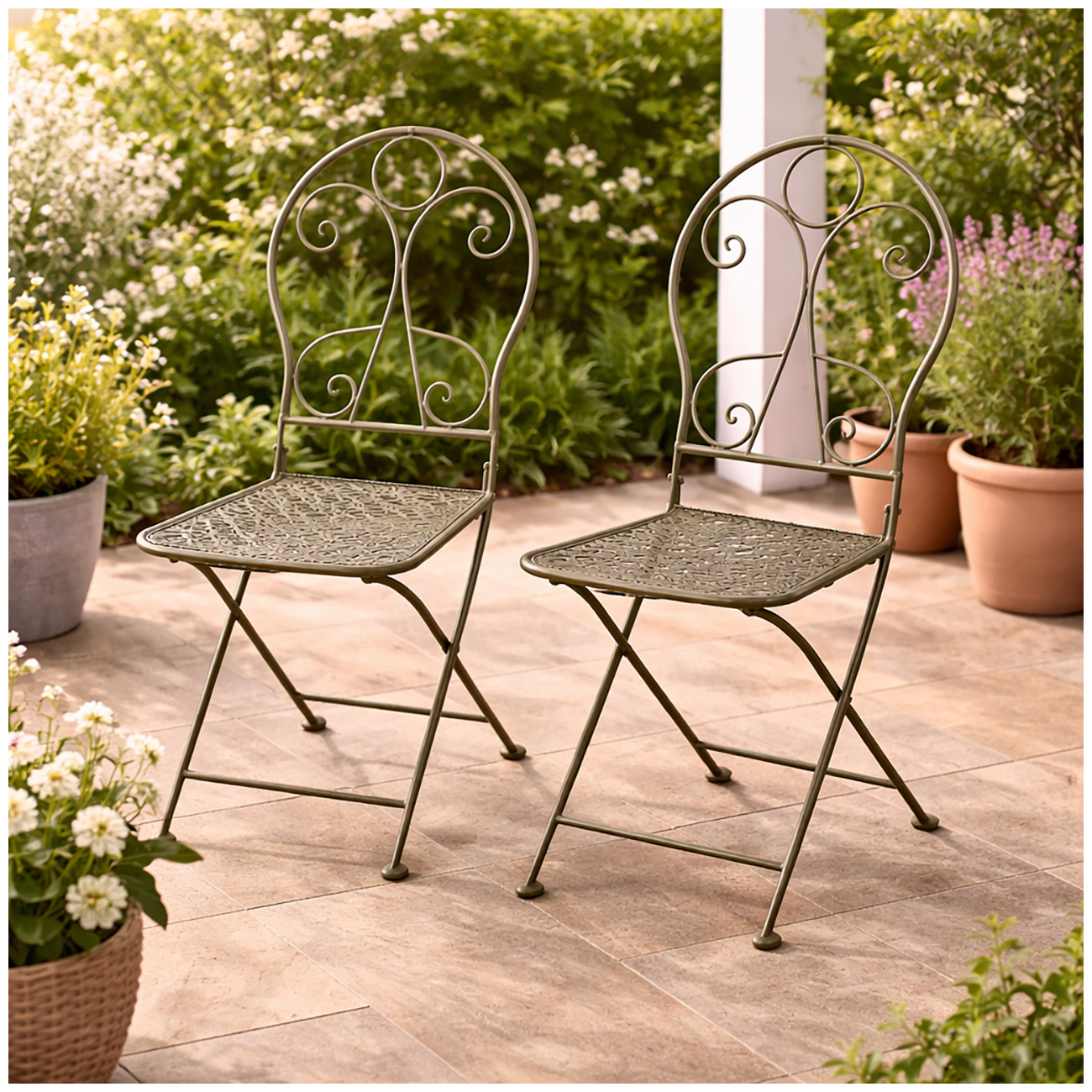 Ob auf kleinen Balkonen, romantischen Terrassen, im Garten oder im Innenbereich – die Tischgruppe ist vielseitig einsetzbar und schafft eine gemütliche Atmosphäre. Die beiden Stühle lassen sich nach Gebrauch einfach zusammenklappen und platzsparend verstauen. So verbindet dieses Ensemble stilvolle Optik mit praktischer Funktionalität.
