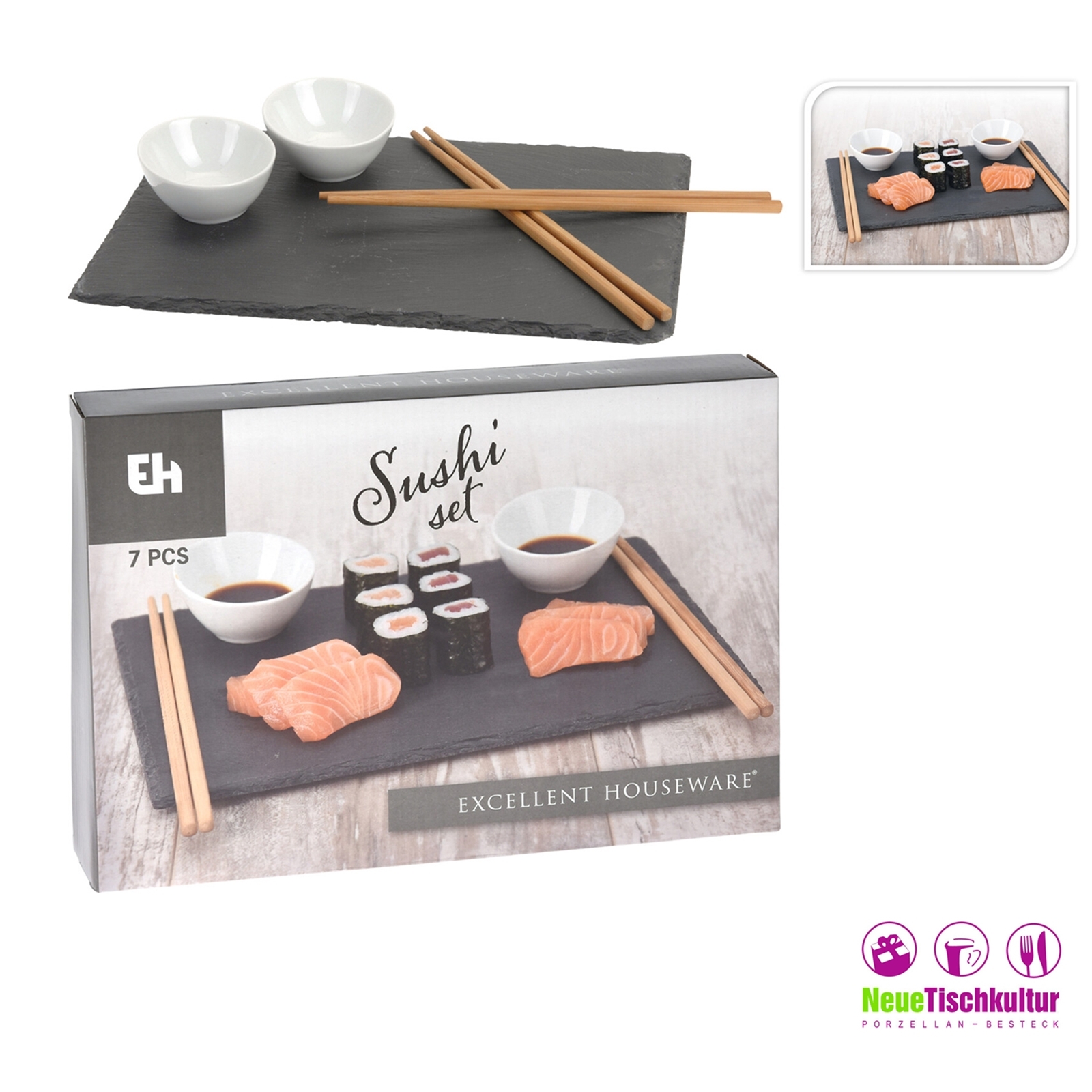 | Lieferumfang: | 1 Schieferplatte, 2 Keramikschälchen, 2 Ess-Stäbchen-Sets |